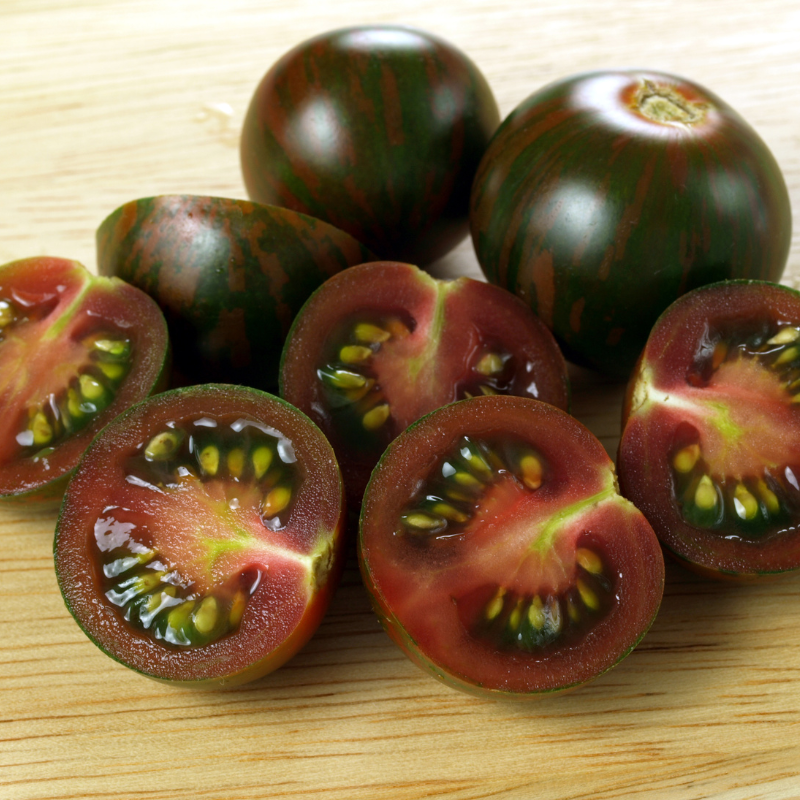Black Zebra Organic Tomato Seeds (Solanum lycopersicum) – Unique Organic Heirloom, Dark Fruits with Green Stripes, Bold Sweet-Tangy Taste
