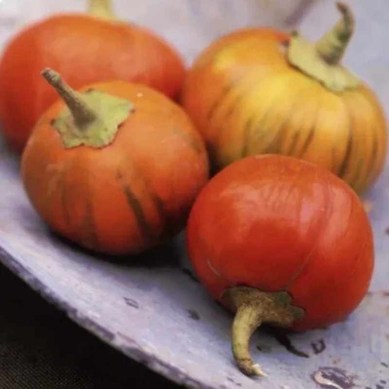 Step aside, ordinary eggplants, Turkish Orange Eggplant (Solanum aethiopicum) is here to steal the show. With its brilliant pumpkin-orange fruits, compact, upright habit, and heirloom heritage, this variety is as much a conversation piece as it is a culinary delight. Grown for centuries in Africa and the Mediterranean, it’s a plant that turns heads in the garden and brings bold, authentic flavor to the kitchen.