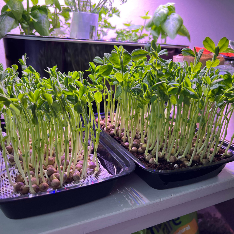 Pea microgreens are resilient and forgiving — perfect for home growers and classrooms.