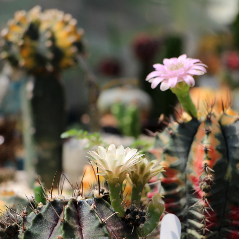 Spectacular blooms – Expect flowers in shades of white, pink, red, and salmon, often larger than the cactus body itself.