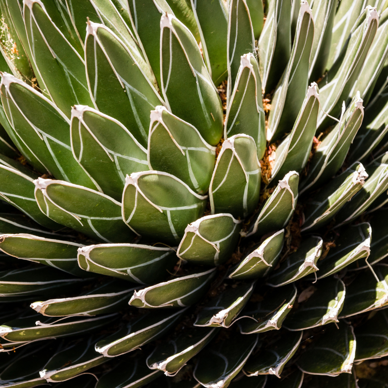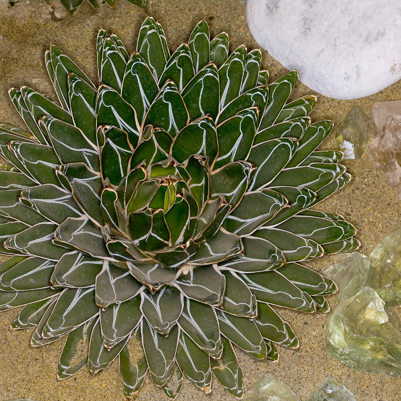 Agave victoriae-reginae is native to the rugged limestone cliffs of northern Mexico, where centuries of adaptation shaped its compact, resilient form. Its triangular leaves pull tightly into a near-perfect dome, each leaf detailed with striking white tracings that look hand-painted. Mature plants often remain under 18 inches tall, making them one of the best compact agaves for small spaces.