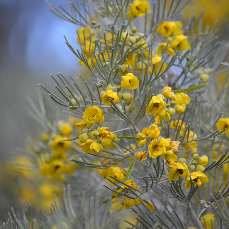 Feathery Cassia Seeds (Senna artemisioides, syn. Cassia artemisioides) – Golden-flowered shrub with fern-like leaves. Drought-tolerant and excellent for brightening dry, sunny borders.