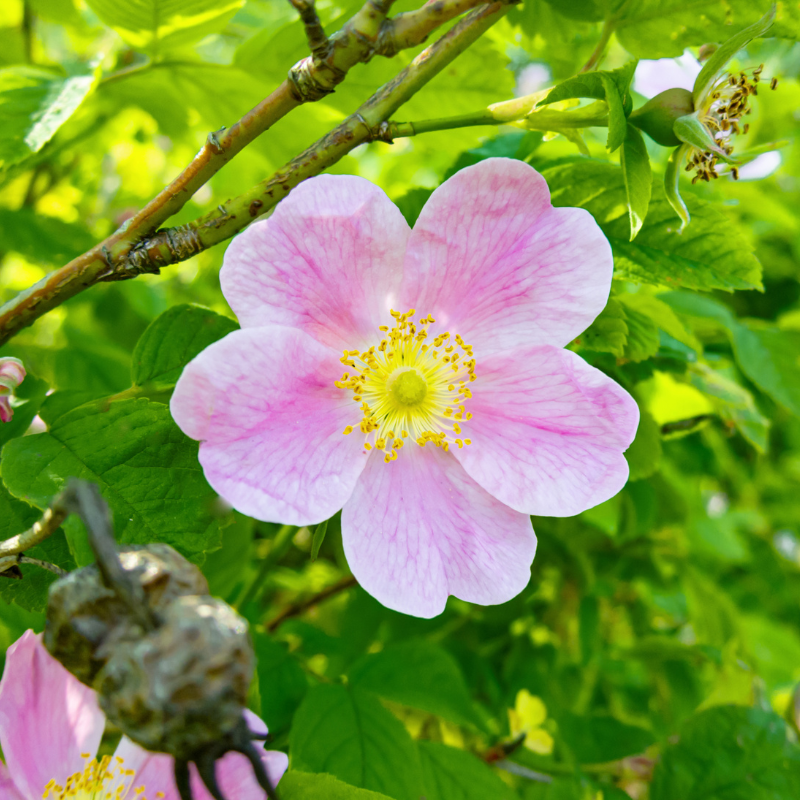 After flowering, Wood’s Rose forms bright red rose hips, which are rich in nutrients for birds and wildlife. These natural food sources help sustain local fauna through fall and winter, contributing to healthy, balanced ecosystems.