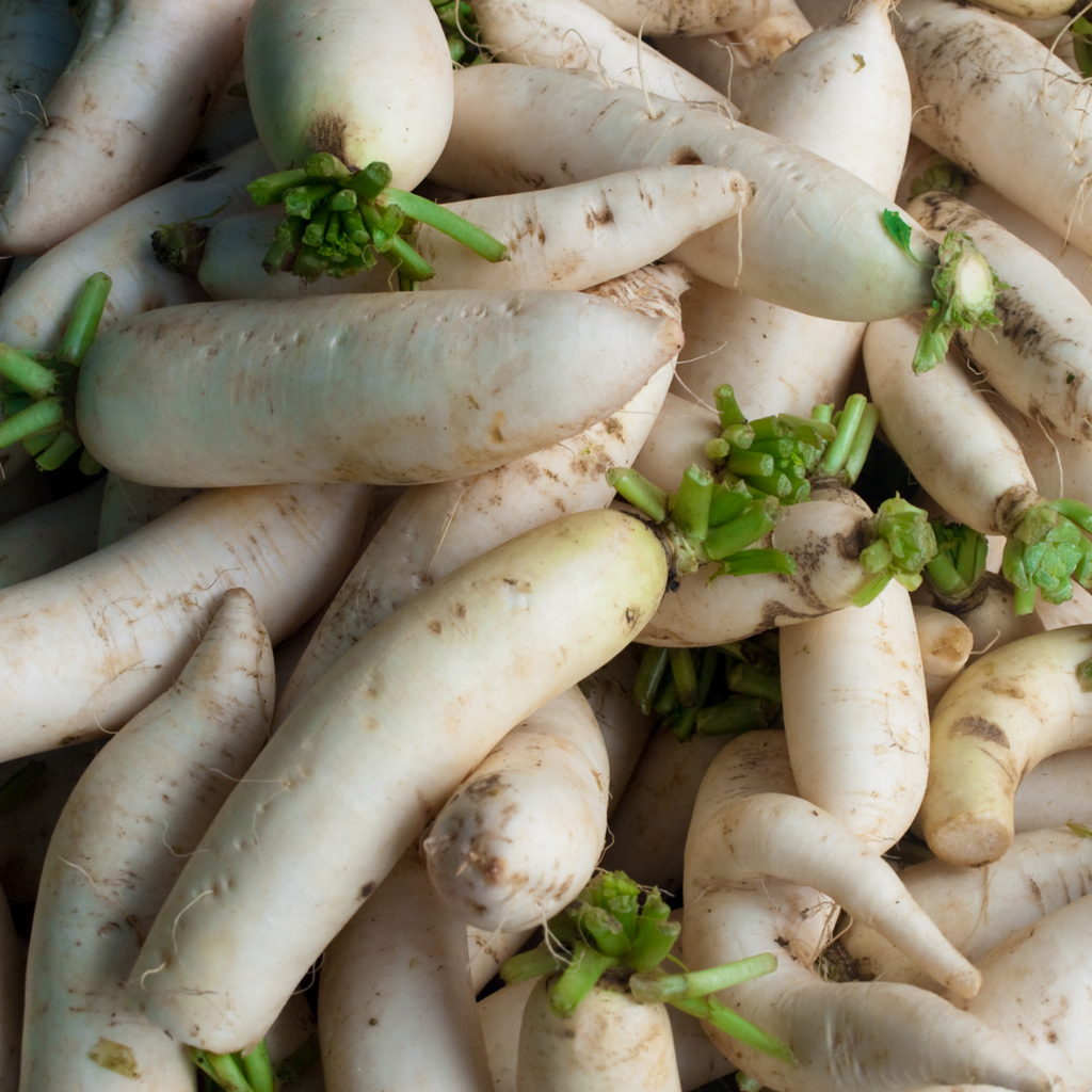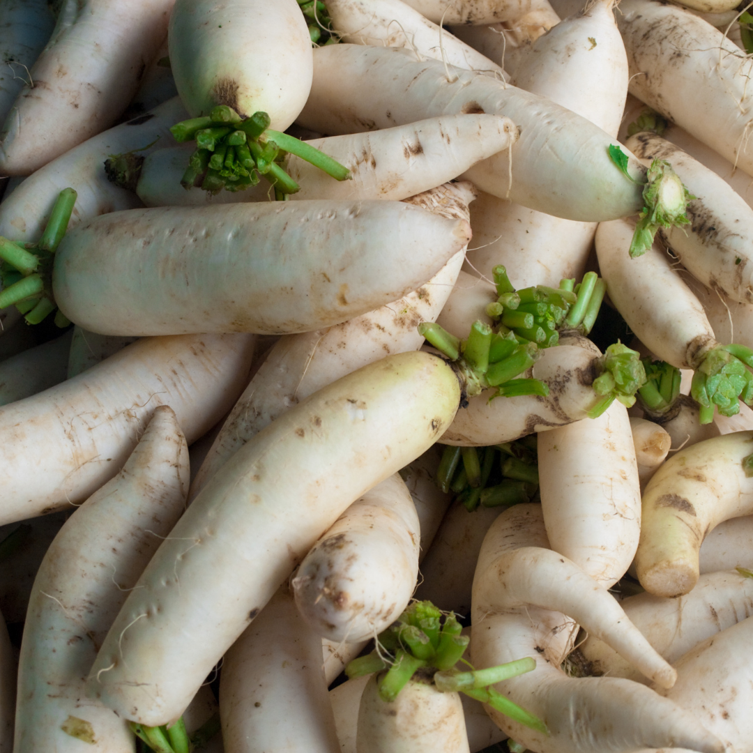 Daikon Radish Organic Seeds (Raphanus sativus var. longipinnatus) Fast-growing Asian root—crisp, spicy-sweet flavor, great for pickling & soil health.