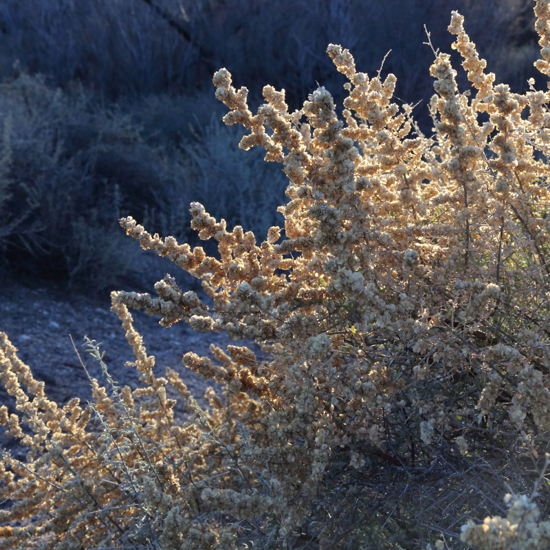 Four Wing Saltbush (Atriplex canescens) is a long lived perennial shrub native to the western and central United States. It thrives in deserts, plains, rangelands, and disturbed soils where rainfall is scarce and minerals are high.
