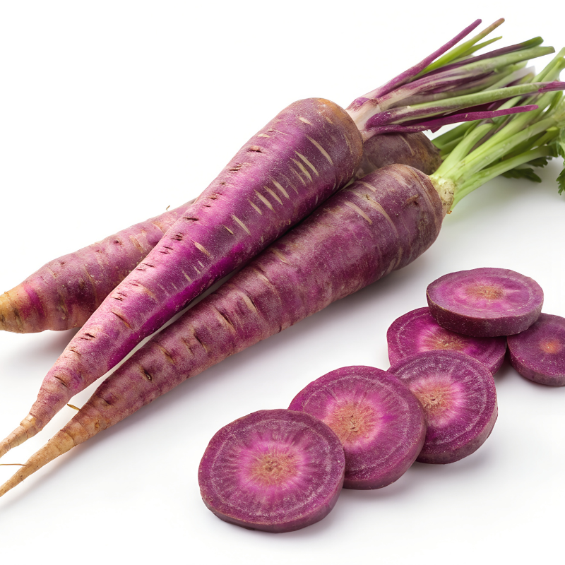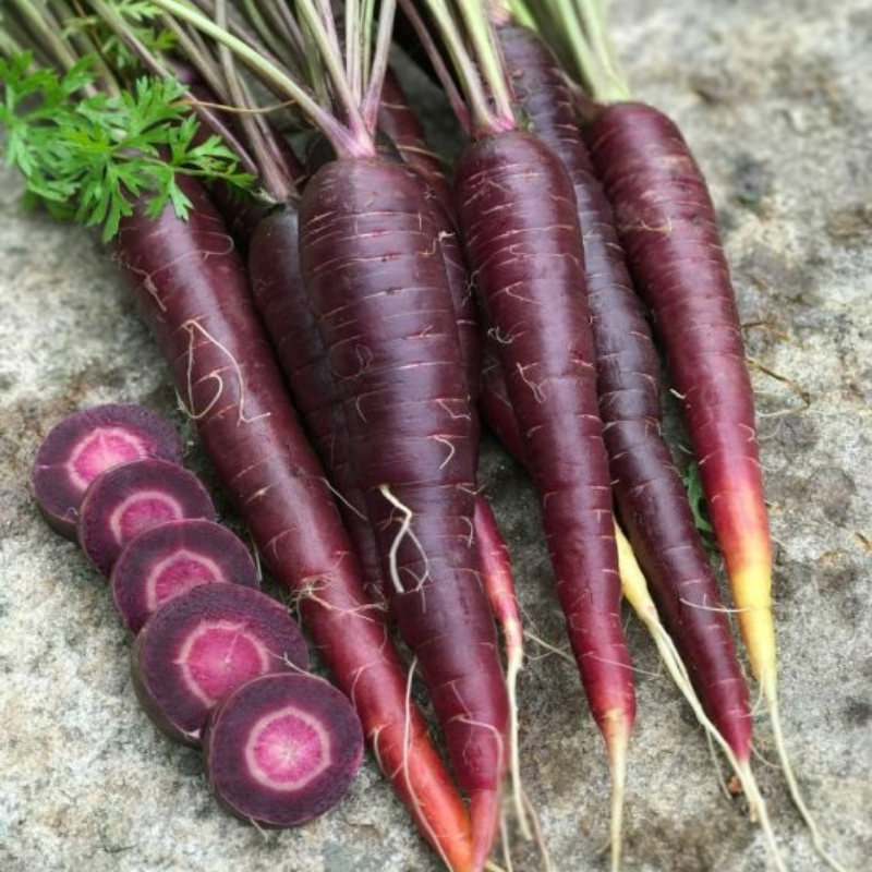 Purple Sun F1 Carrot Seeds (Daucus carota subsp. sativus) – Vibrant hybrid carrot with a deep purple exterior and sweet orange core; packed with antioxidants and garden appeal.